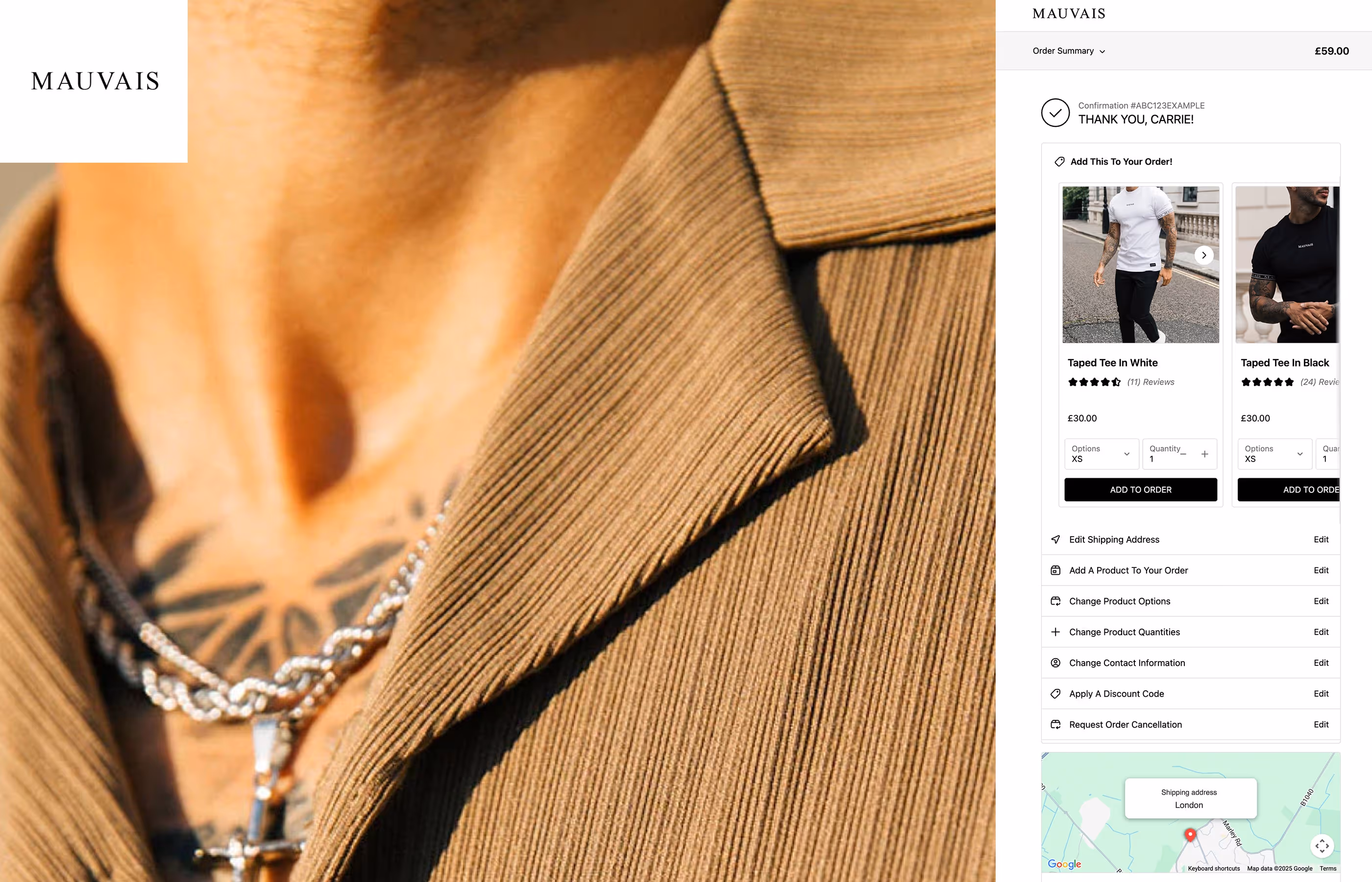 One of the UK’s fastest-growing menswear brands. Stylish, sharp and customer-obsessed – Mauvais now offer seamless self-service edits and capitalise on upsell opportunities without lifting a finger.