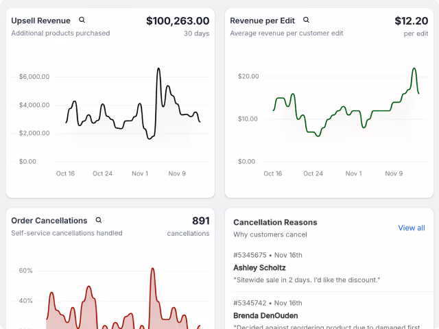 Order Editing integrates with your tech stack to make order management even easier. You can show Order Editing info inside of Gorgias, send editing events to your 3PL (like ShipBob), and even fully integrate into an ERP (like Netsuite).