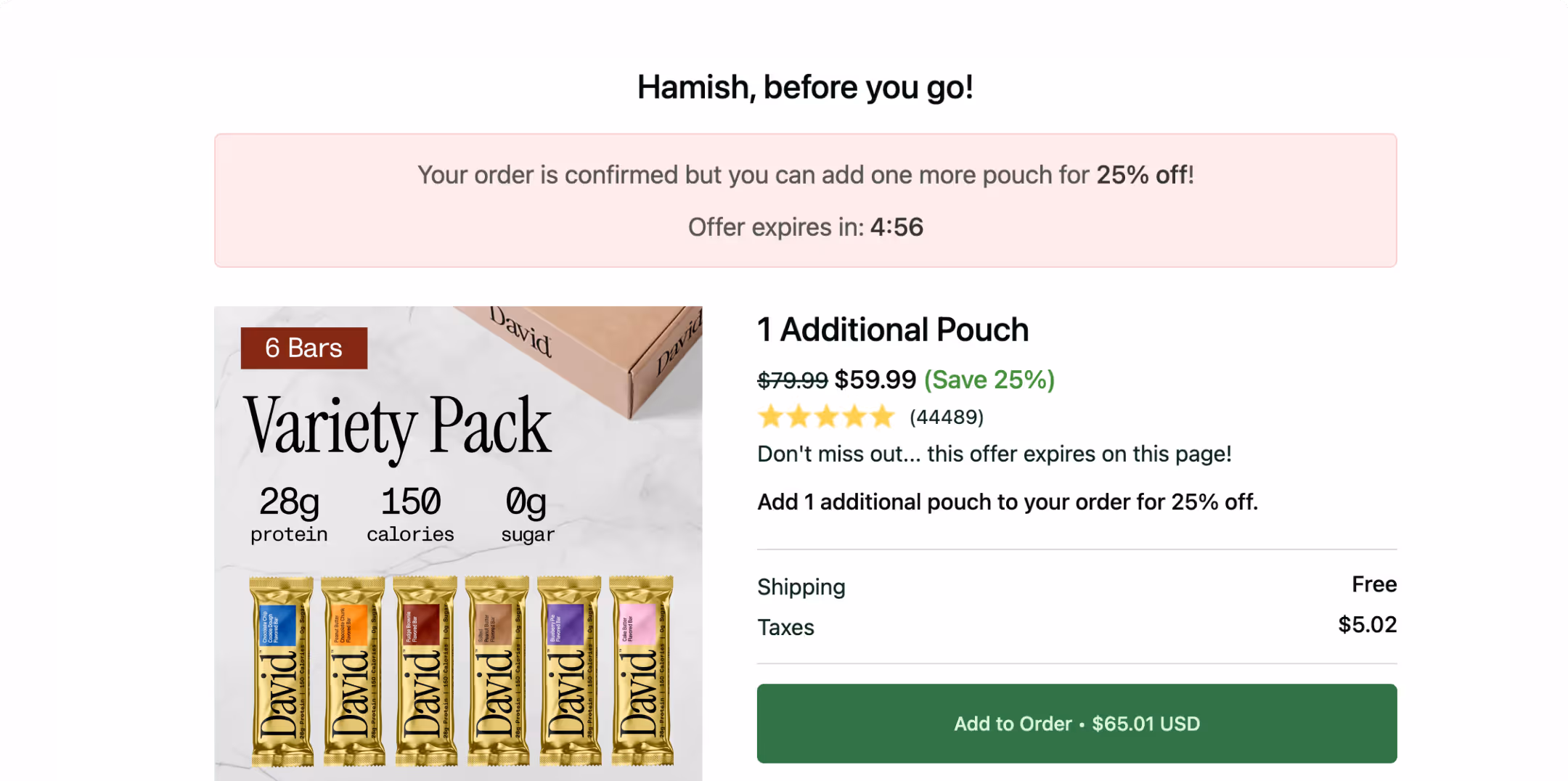 Let customers add one more product to their order with discounts that don’t appear on your product pages.